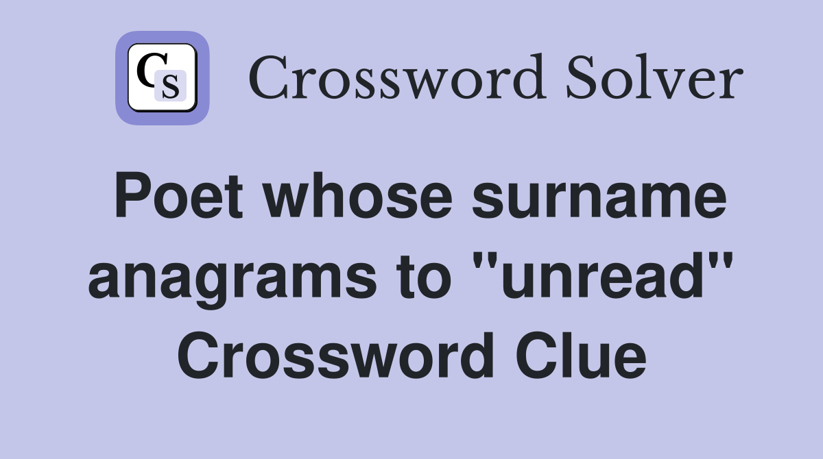 Poet whose surname anagrams to quot unread quot Crossword Clue Answers