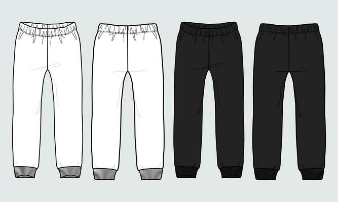 Loose Sweatpants Flat Technical Drawing Illustration Five Pocket