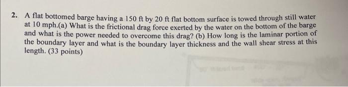 Solved A flat bottomed barge having a 150ft by 20ft flat Chegg com