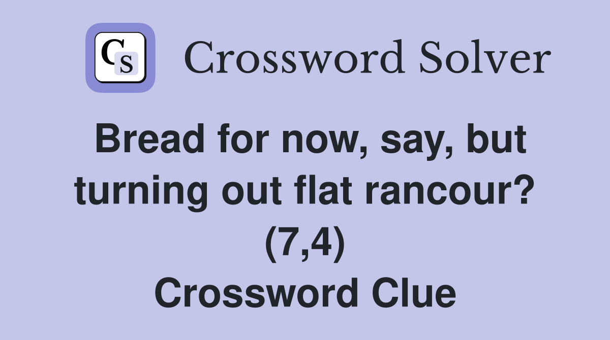 Bread for now say but turning out flat rancour? (7 4) Crossword