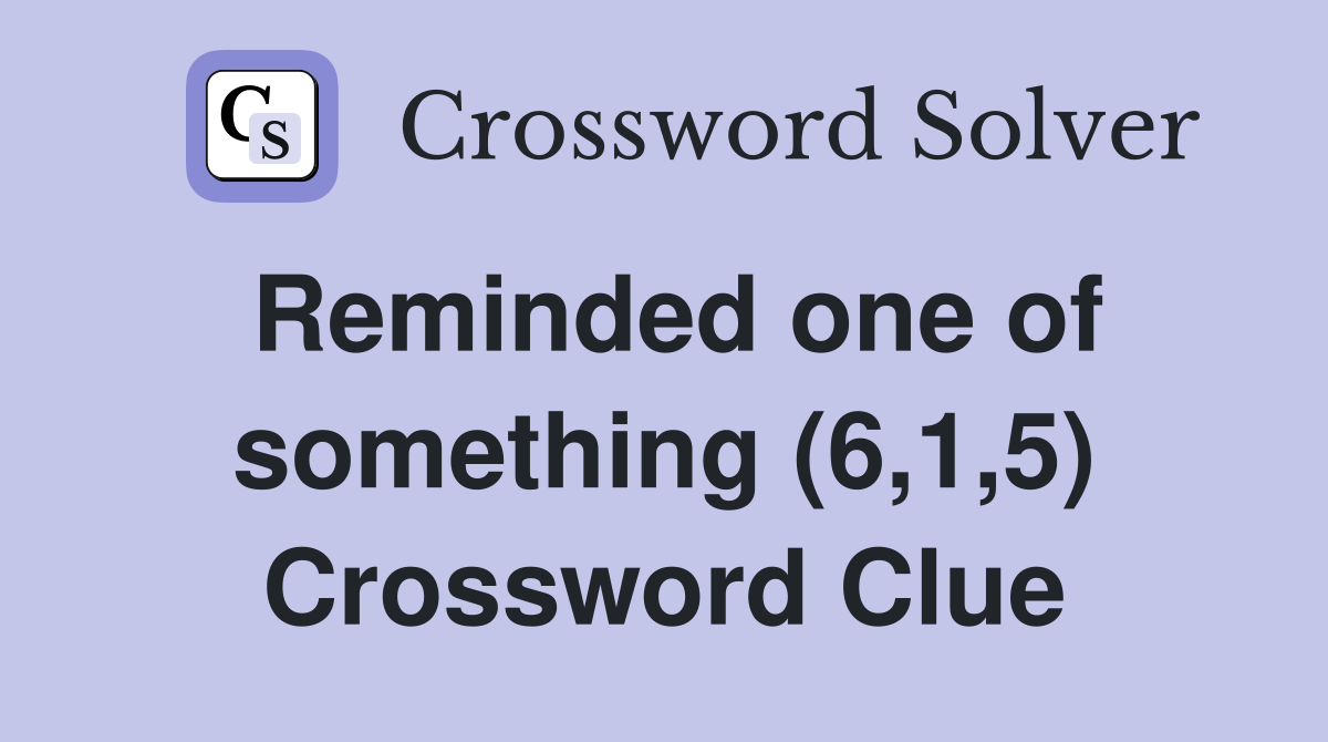 Reminded one of something (6 1 5) Crossword Clue Answers Crossword