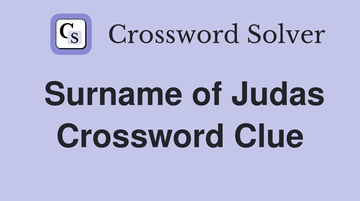 Surname of Judas Crossword Clue Answers Crossword Solver