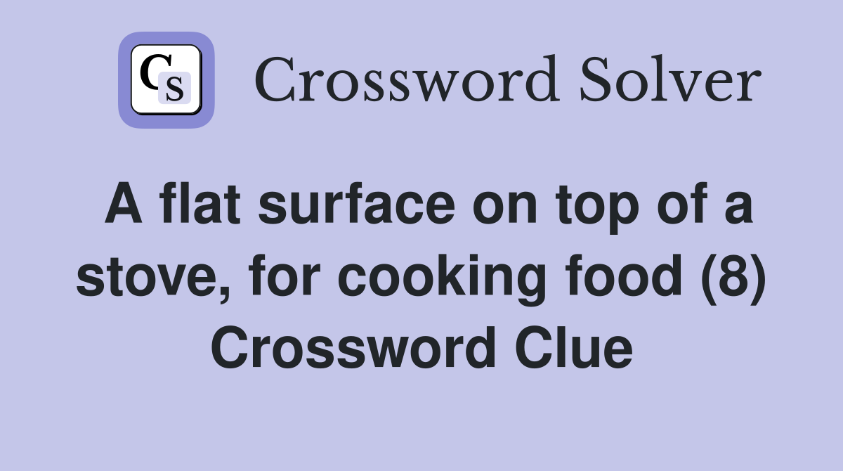A flat surface on top of a stove for cooking food (8) Crossword Clue