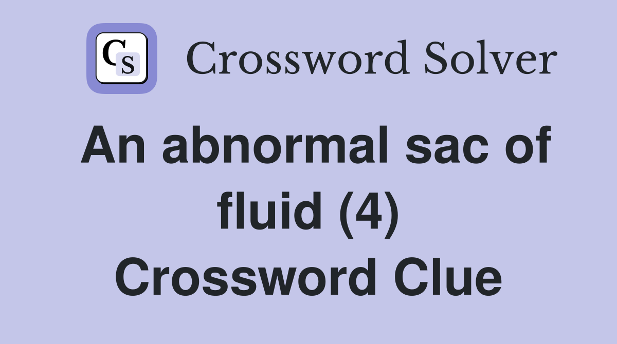 An abnormal sac of fluid (4) Crossword Clue Answers Crossword Solver