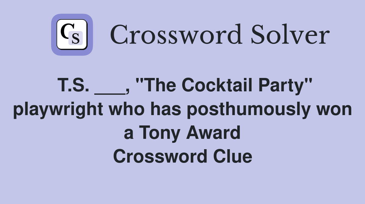 T S quot The Cocktail Party quot playwright who has posthumously won a
