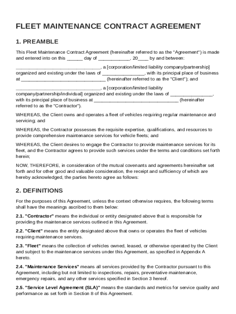 Fleet Maintenance Contract Template Fill Online Printable Fillable