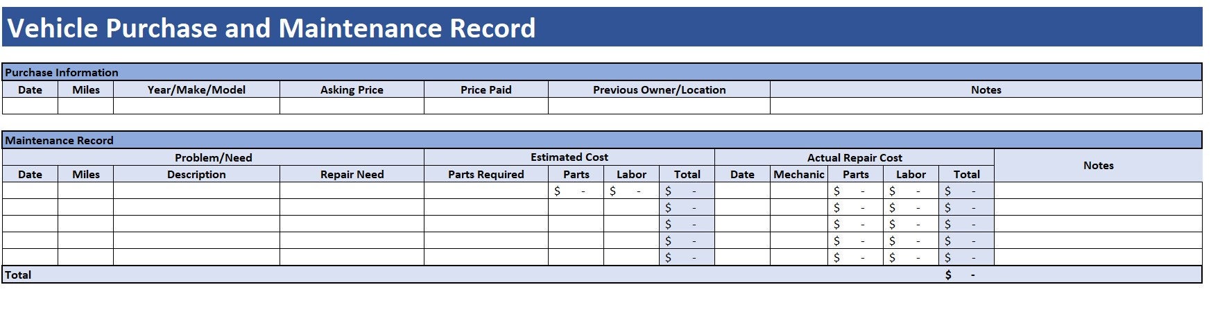 Vehicle or Fleet Purchase and Maintenance Record Etsy