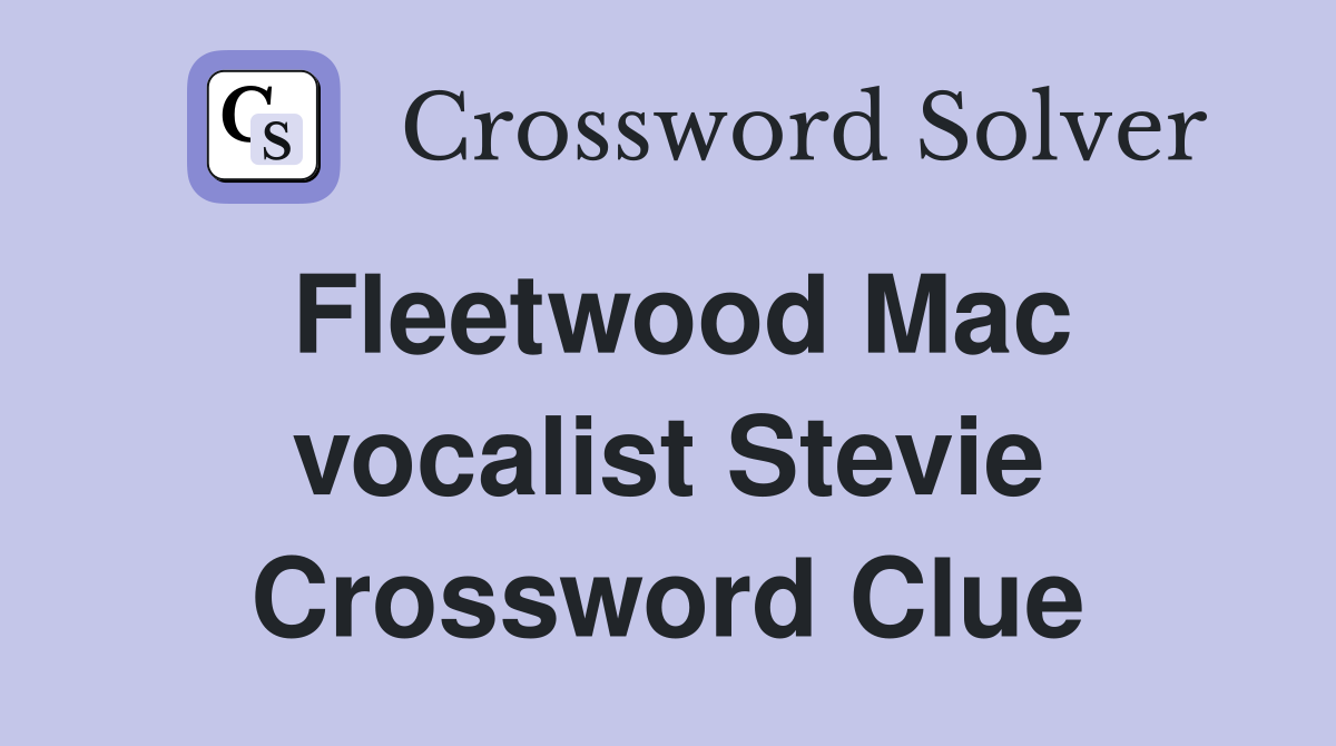 Fleetwood Mac vocalist Stevie Crossword Clue Answers Crossword Solver