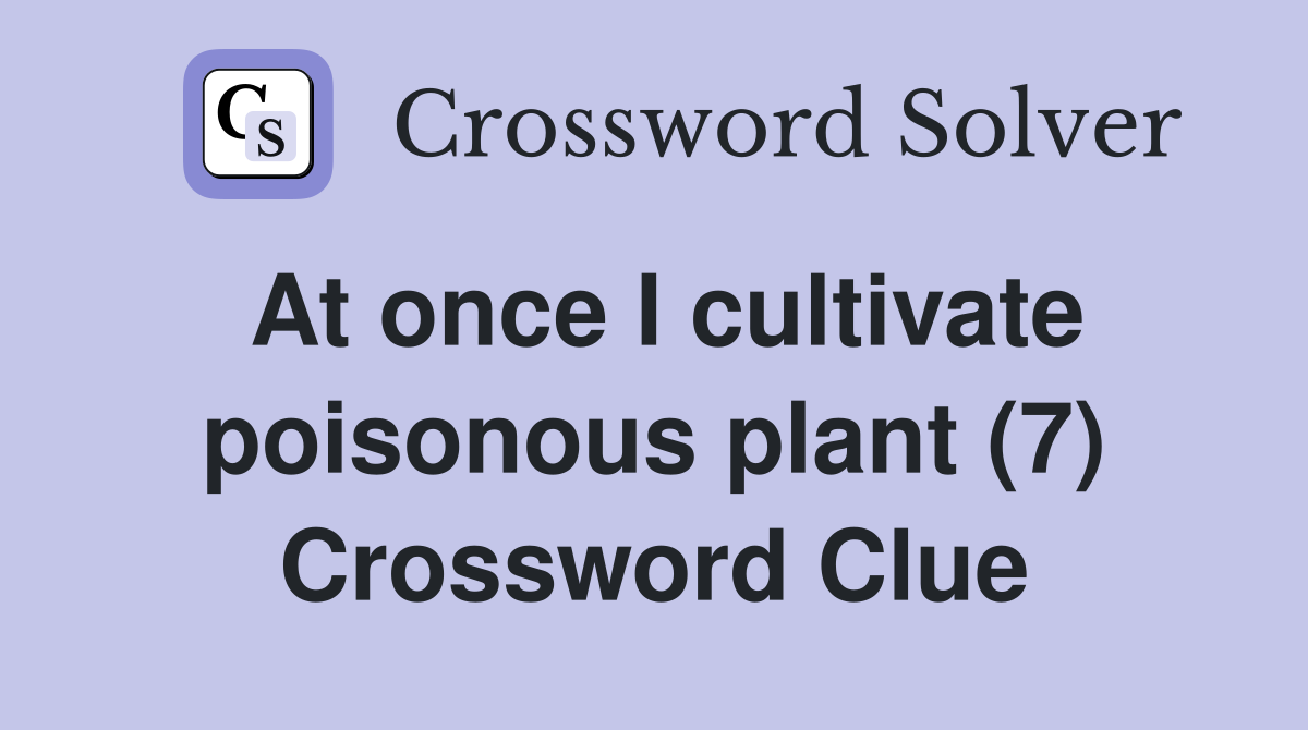 At once I cultivate poisonous plant (7) Crossword Clue Answers