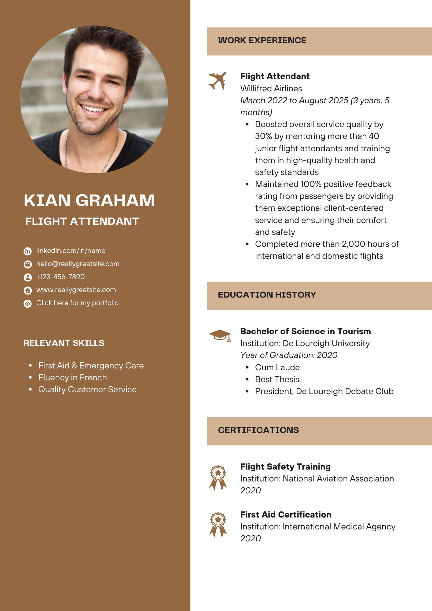 Free Beginner Flight Attendant CV Template to Edit Online