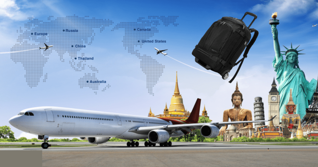 Premium Photo Travel wallpaper with airplane and trolly bag