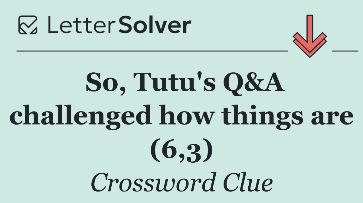 So Tutu #39 s Q A challenged how things are (6 3) Crossword Clue Answer