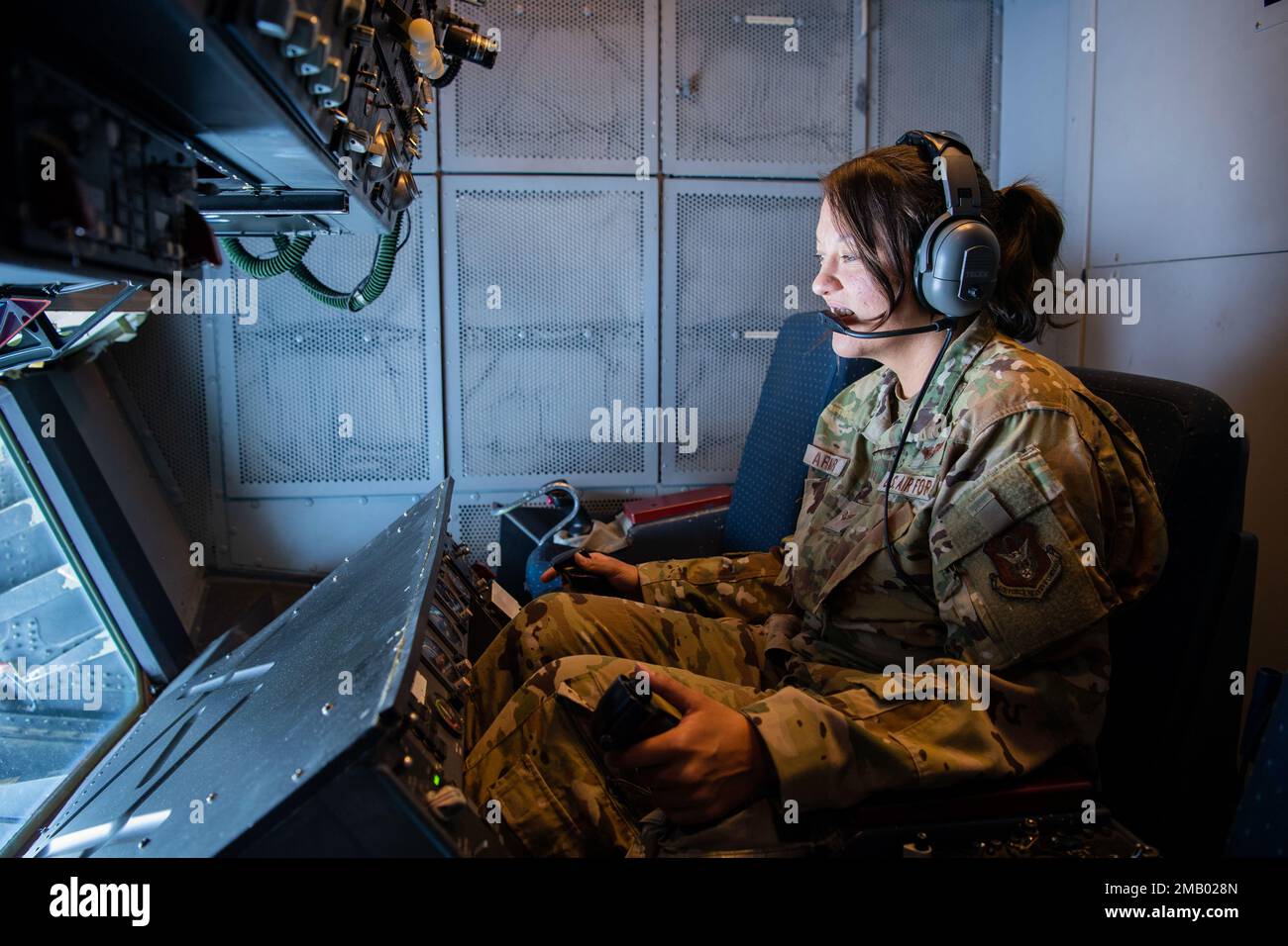 U S Air Force Senior Airman Caryl Armour a boom operator with the