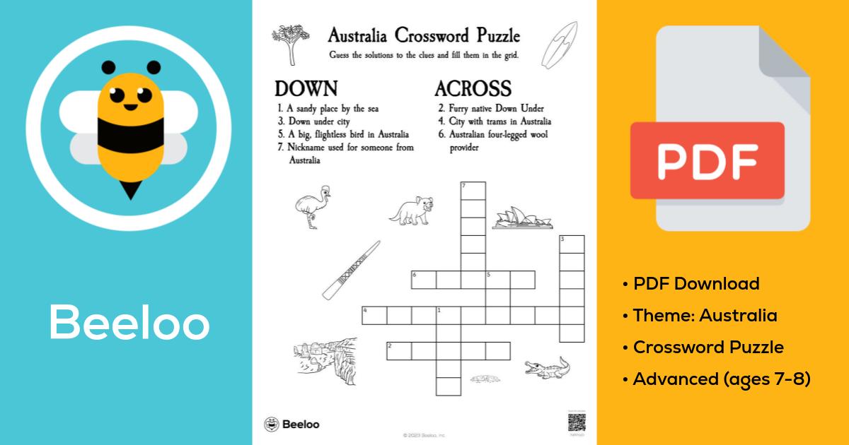 Australia Crossword Puzzle • Beeloo Printable Crafts and Activities for