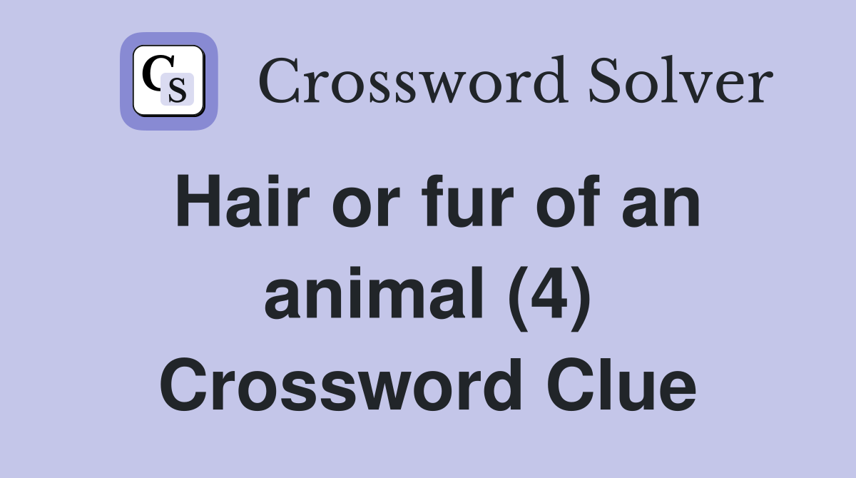 Hair or fur of an animal (4) Crossword Clue Answers Crossword Solver