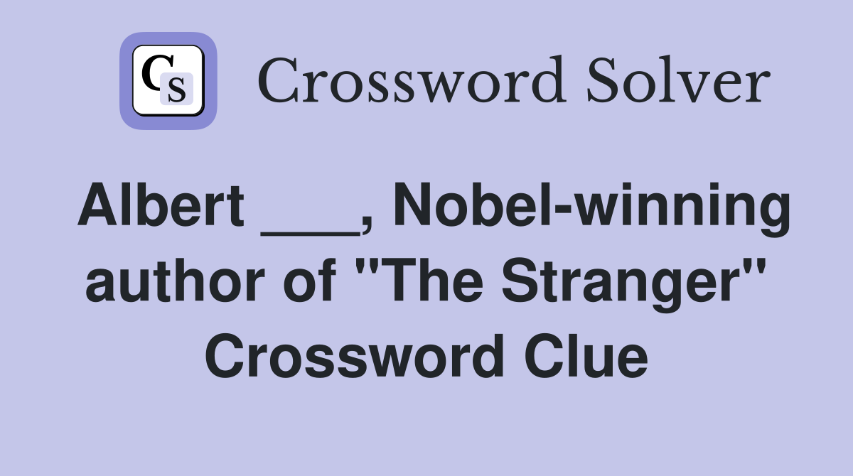 Albert Nobel winning author of quot The Stranger quot Crossword Clue