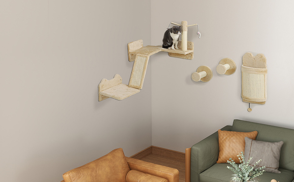 Amazon com : COZIWOW Wall Mounted Cat Tree Space Saving Feline