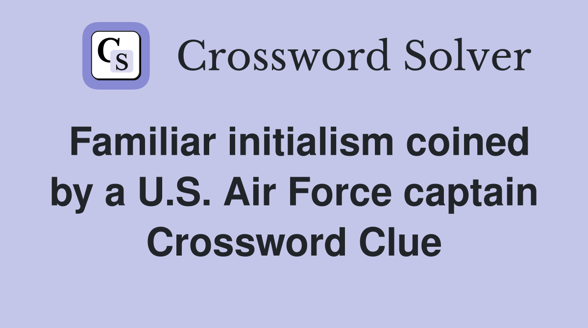Familiar initialism coined by a U S Air Force captain Crossword Clue