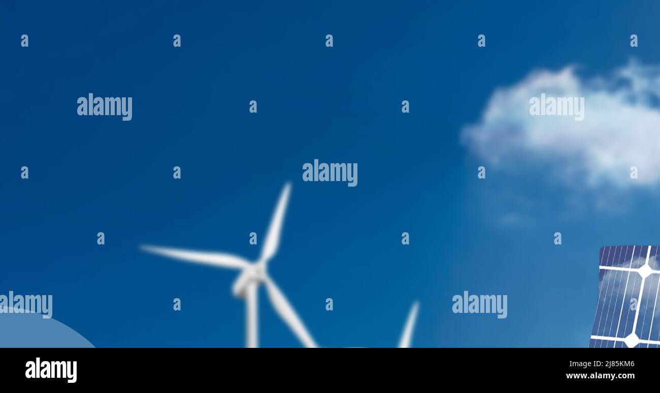 Image of floating icons with graphs over man with puzzle and wind