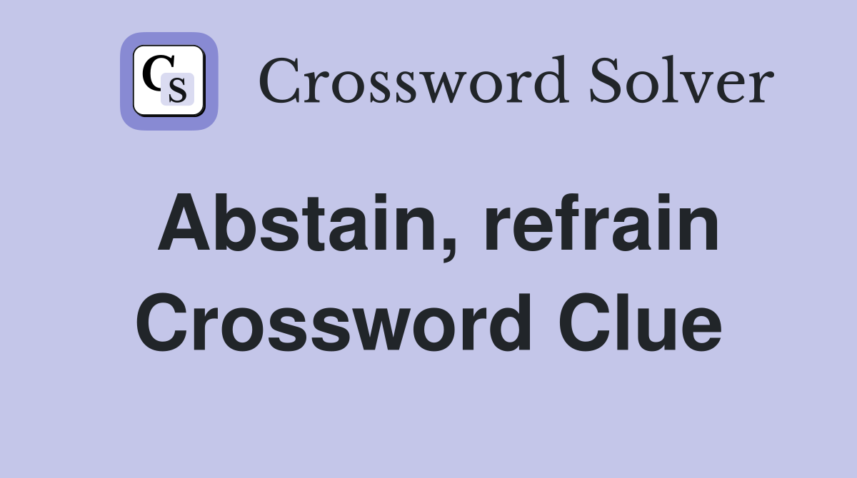 Abstain refrain Crossword Clue Answers Crossword Solver