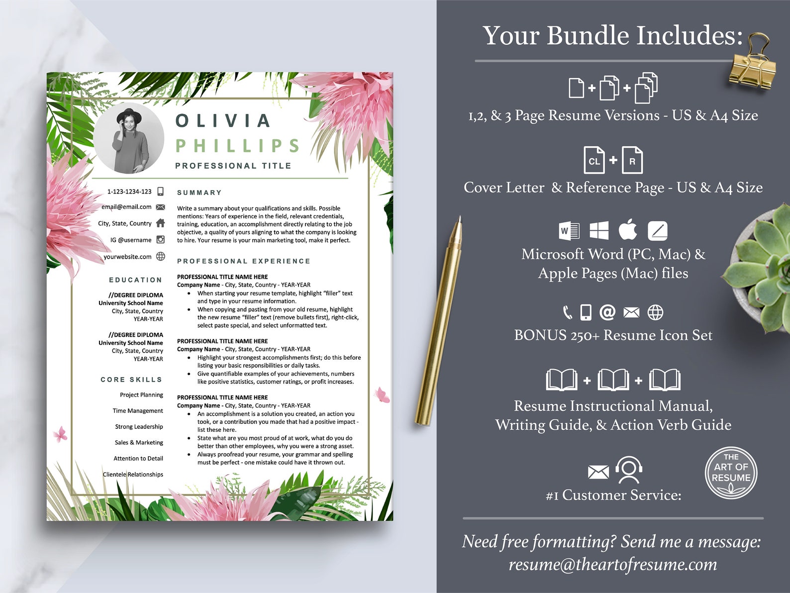 Floral Designer resume template Resume Templates ~ Creative Market