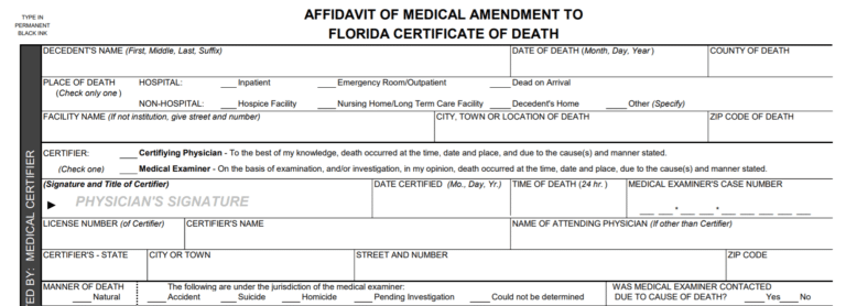 Florida Death Certificate Amendment