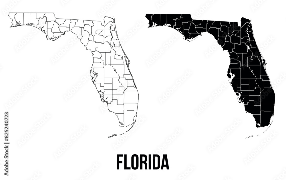 Black White Florida Digital Map With Counties Map Resources FL USA