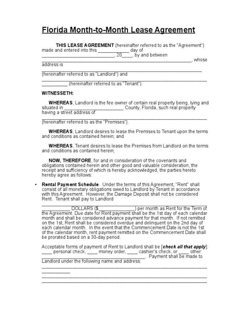 Florida Month To Month Lease Agreement PDF Leasehold Estate Lease