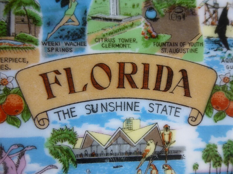 Vintage 60s Florida Sunshine State Collectors Plate 8 Souvenir Etsy