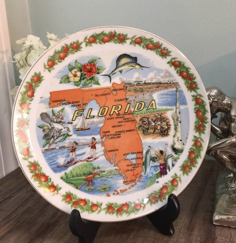 Vintage Florida Souvenir Plate Collectible Home Decor Mid Etsy