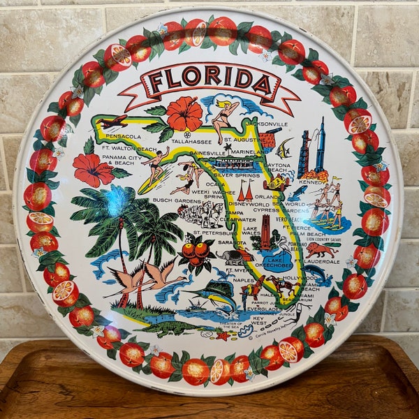 Vintage Florida State Pictorial Map Nutron Plastic Souvenir Serving