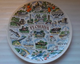 Vintage Florida Sunshine State Souvenir Plate 9 Inch Etsy