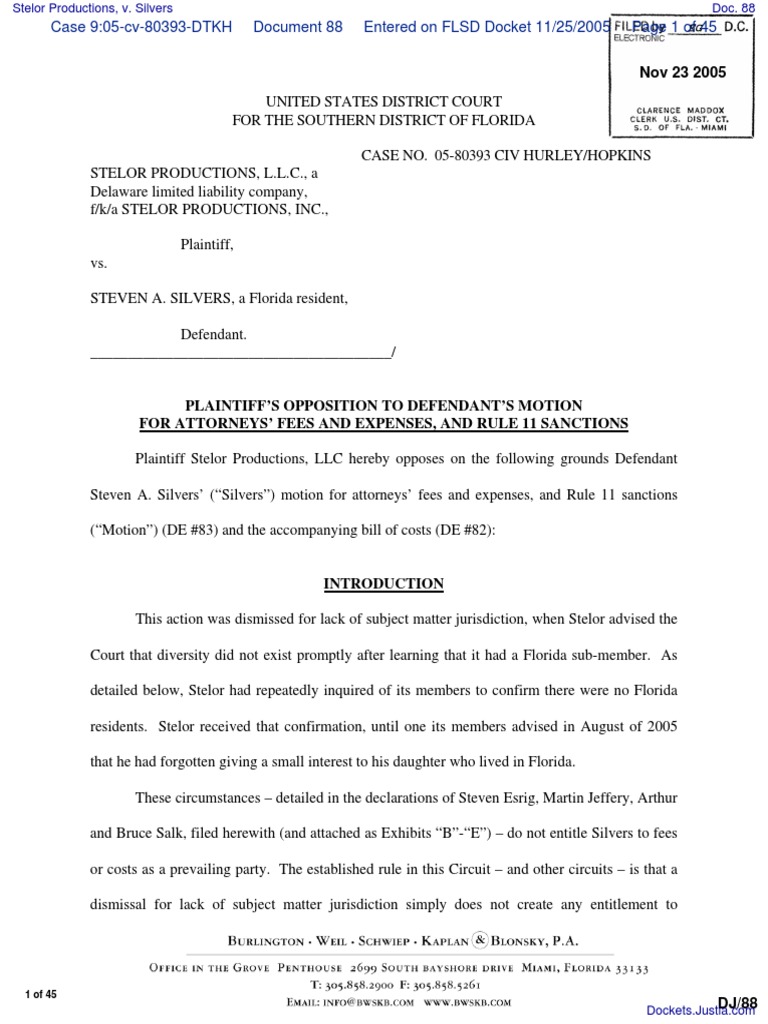 Plaintiff S Opposition To Defendant S Motion For Attorneys Fees And