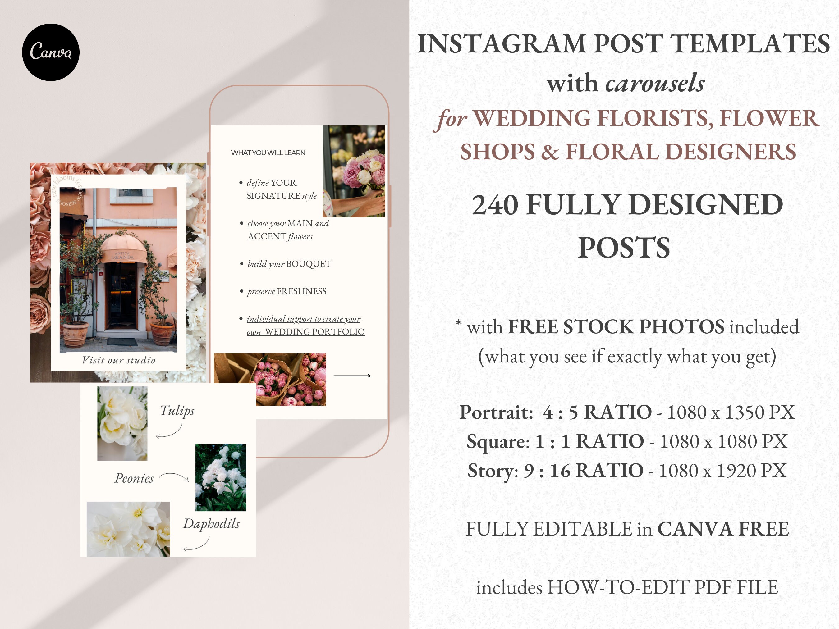 Romantic Instagram Templates for Florists Wedding Florist Social Media