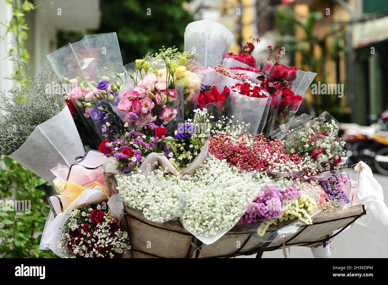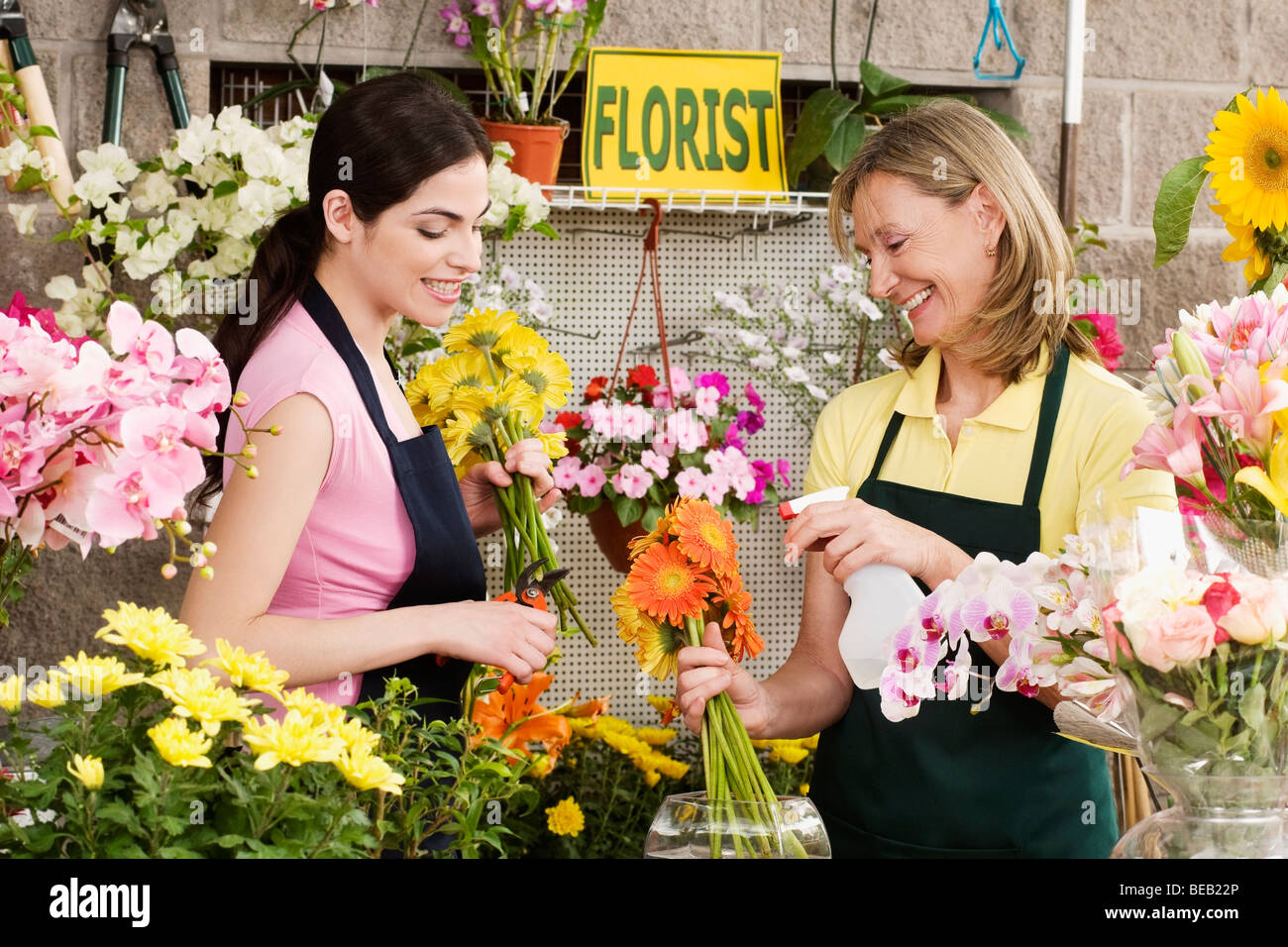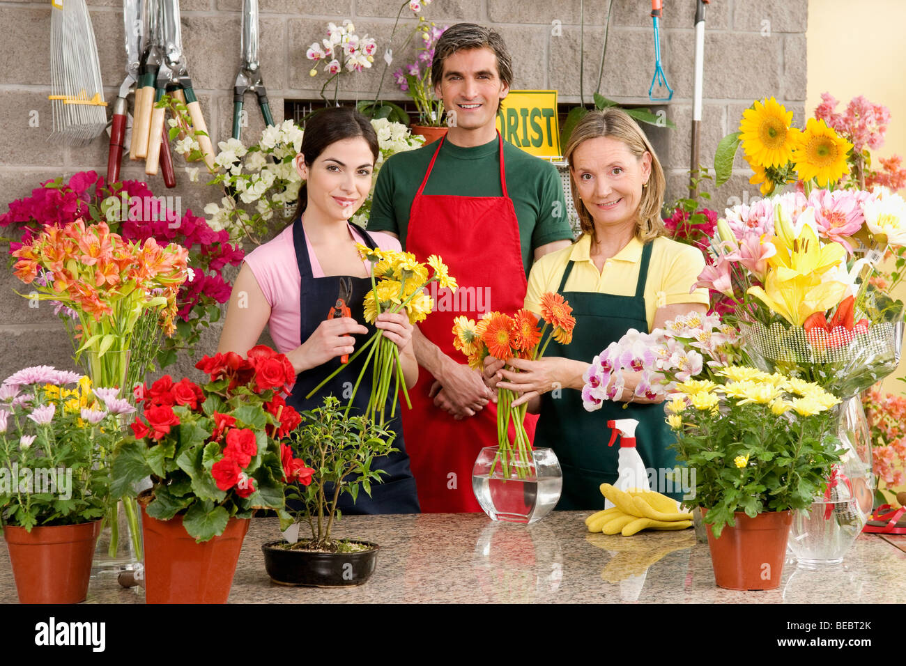 Smiling florist flower shop colorful making bouquet Stock Photo