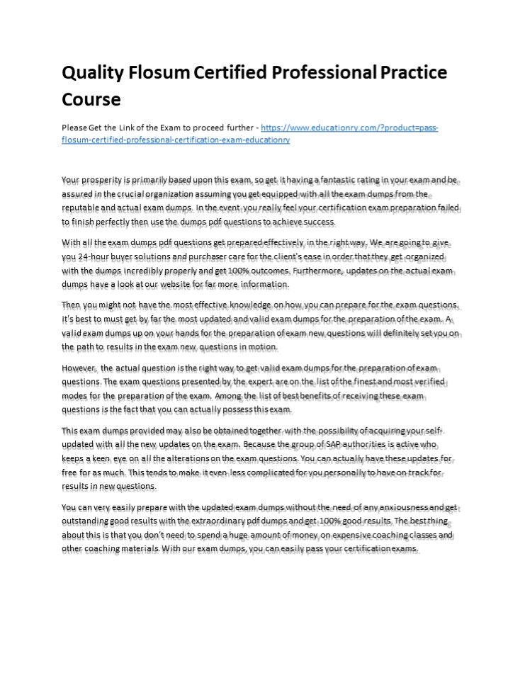 Quality Flosum Certified Professional Practice Course presentation