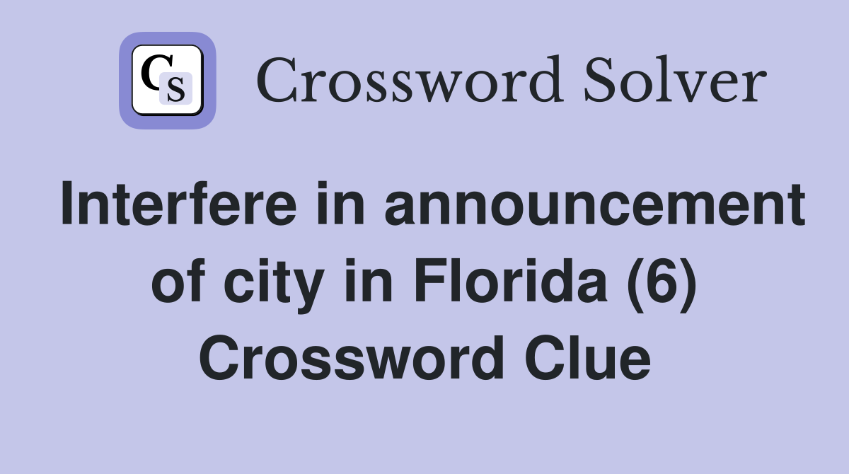 Interfere in announcement of city in Florida (6) Crossword Clue