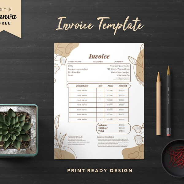 Receipt Template Editable Flower Invoice Template Order Etsy
