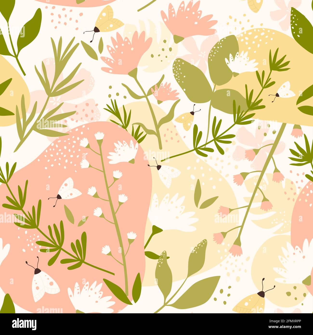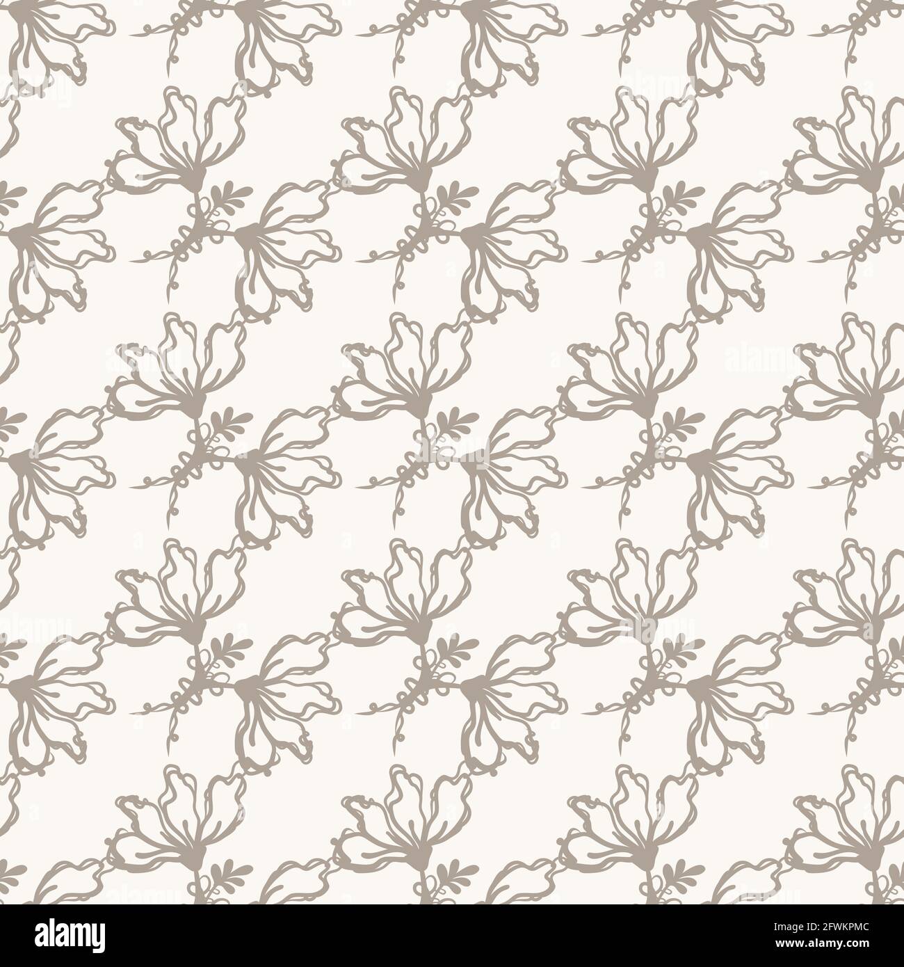 Seamless minimalist doodle leaf pattern background Calm boho earthy