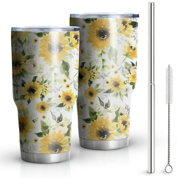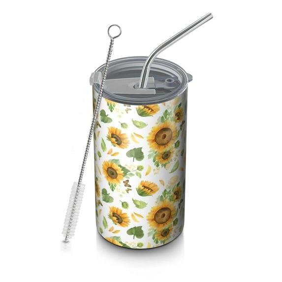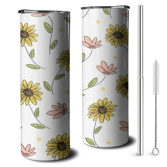 20oz Coffee Tumblers White Green Leaf Flower Sunflower Pattern