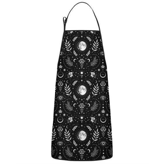 Black White Moon Leaf Flower Eye Pattern Apron Garden Aprons for Women