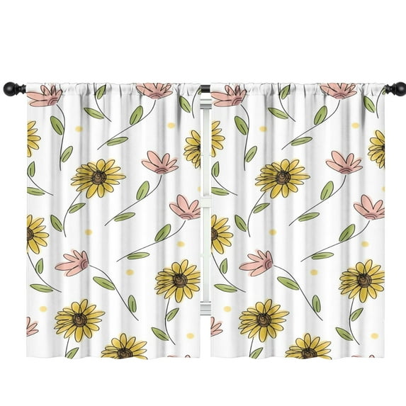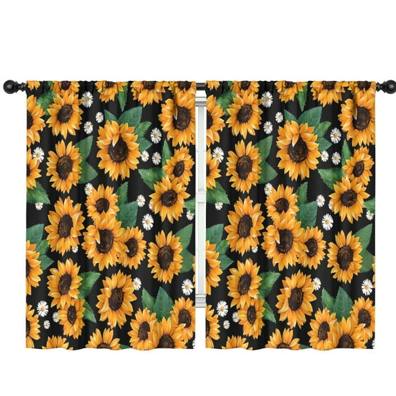 Blackout Kids Curtains Black Colorful Flower Leaf Sunflower Pattern