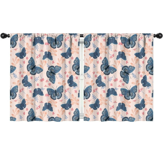 Blackout Kids Curtains Blue Butterfly Leaf Flower Pink Pattern