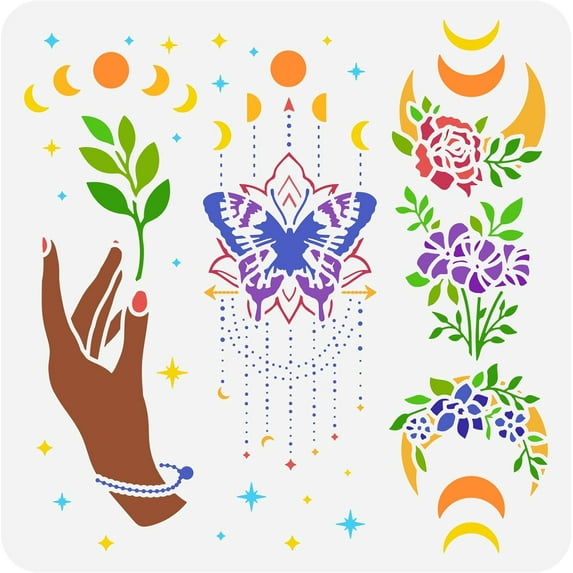 Boho Moon Phase Stencil 11 8x11 8 inch Minimalist Hand Stencil Plastic