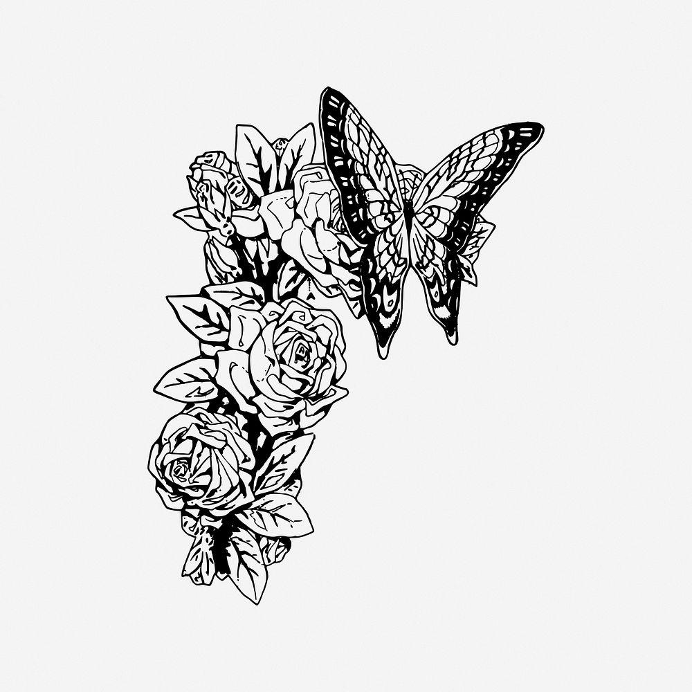 Butterfly flower drawing illustration Free Free Photo rawpixel