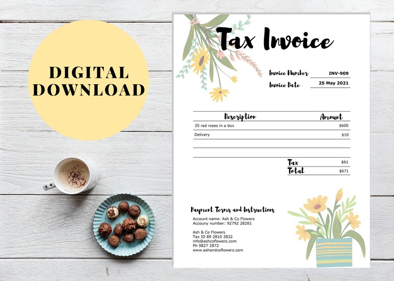 Flower Shop Invoice Template Customizable With Google Sheets Etsy