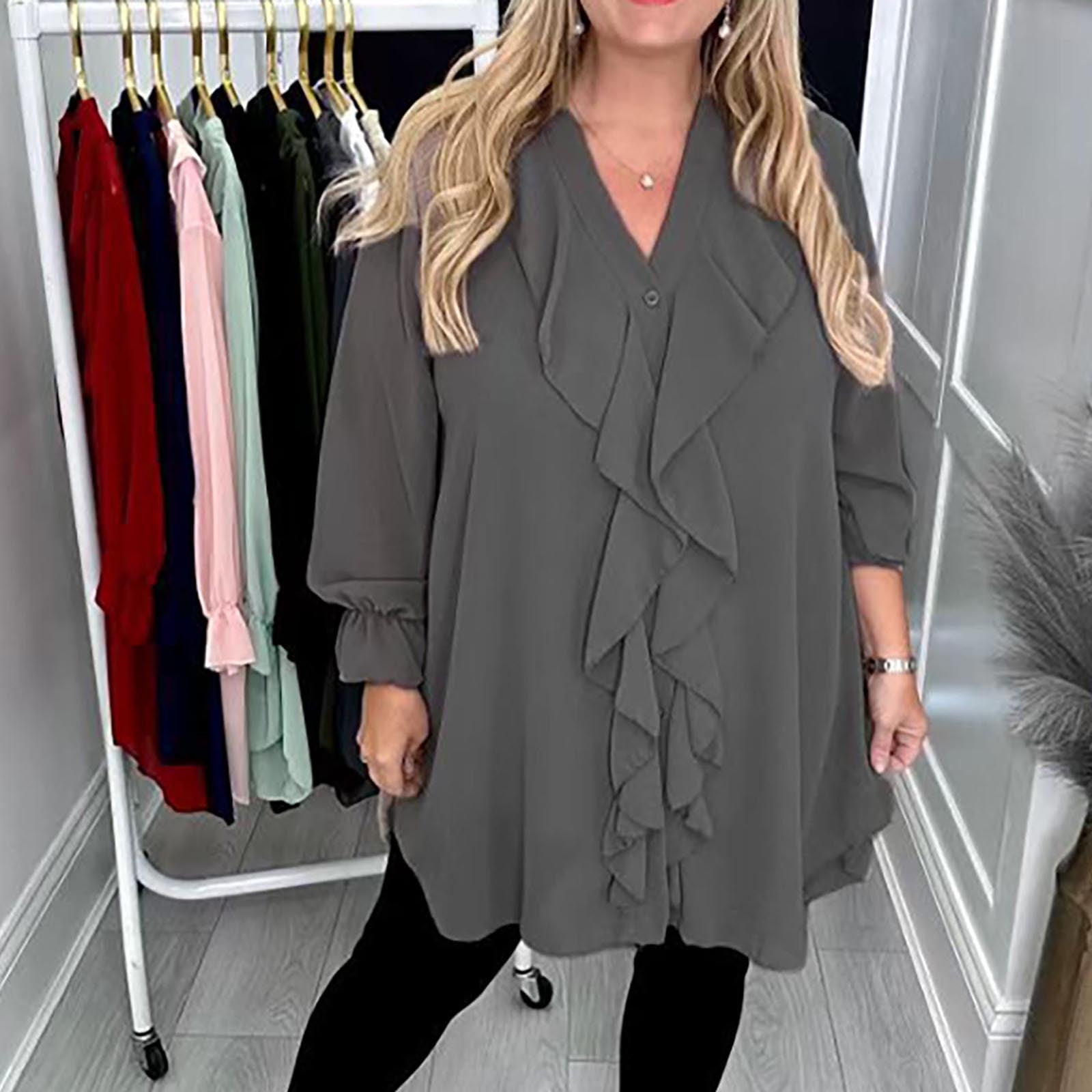 Blmnix Chiffon Slouchy Shirts for Women Trendy Flowy Draped Dark Gray