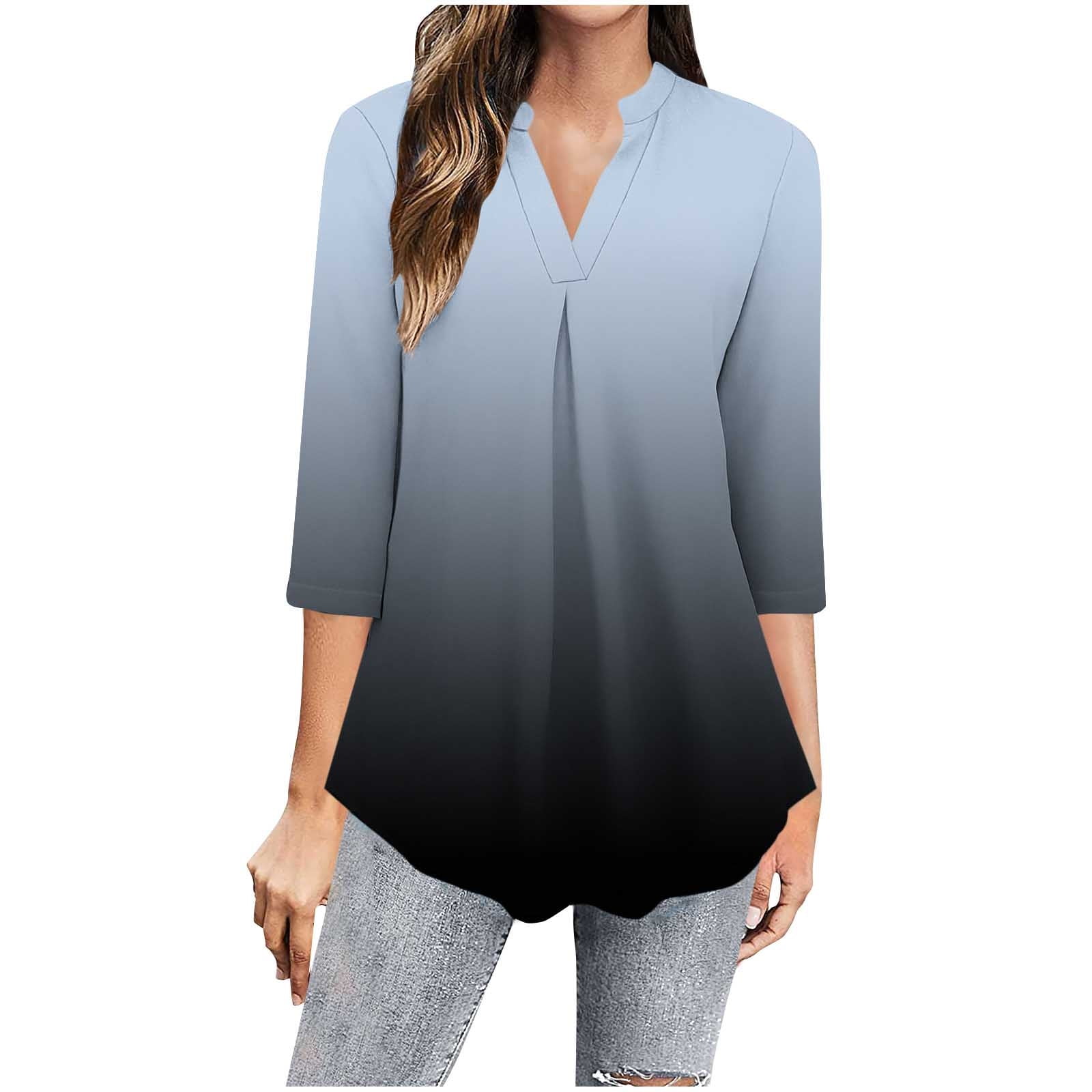 Business Casual Blouses Womens 3/4 Sleeve Gradient Loose Tops Fashion