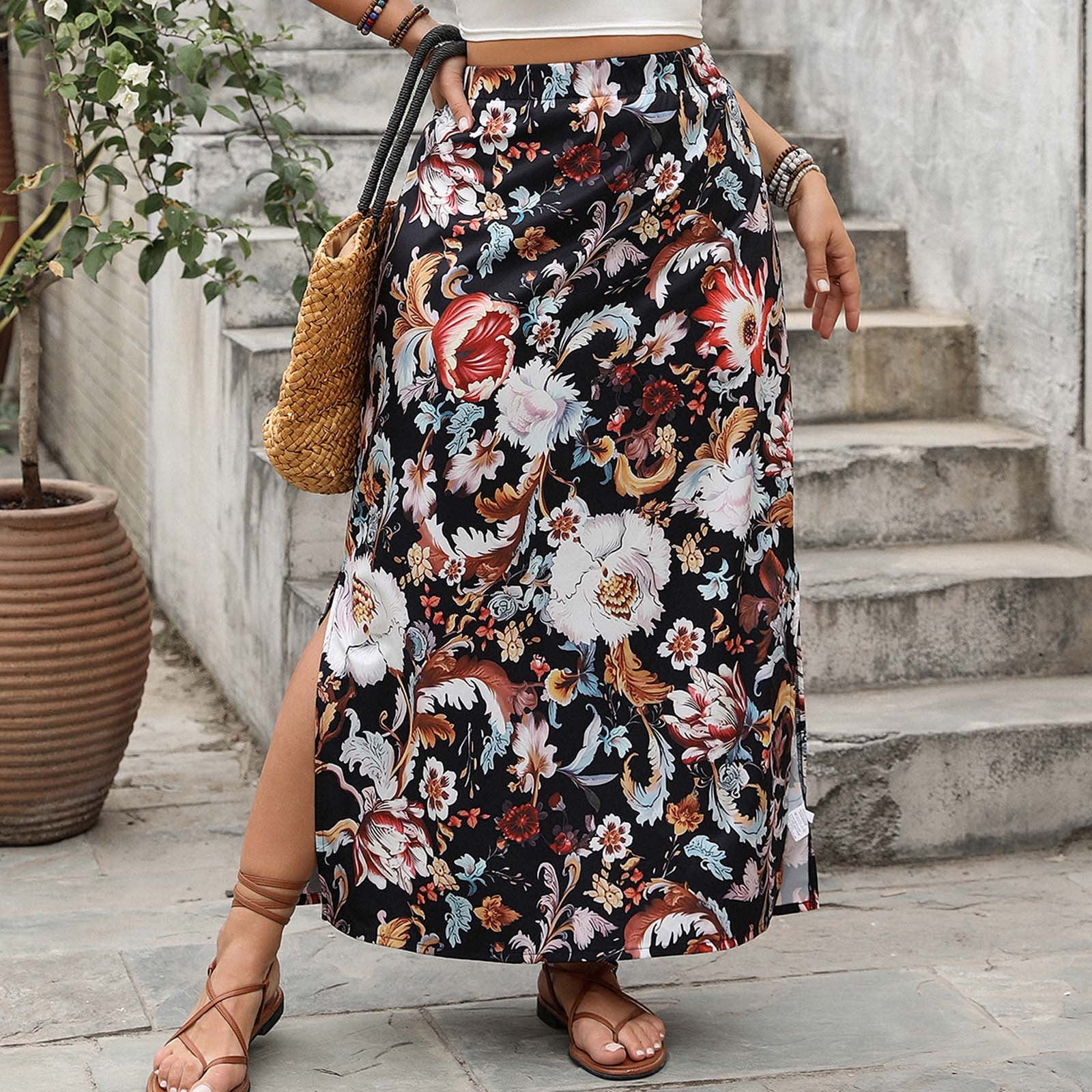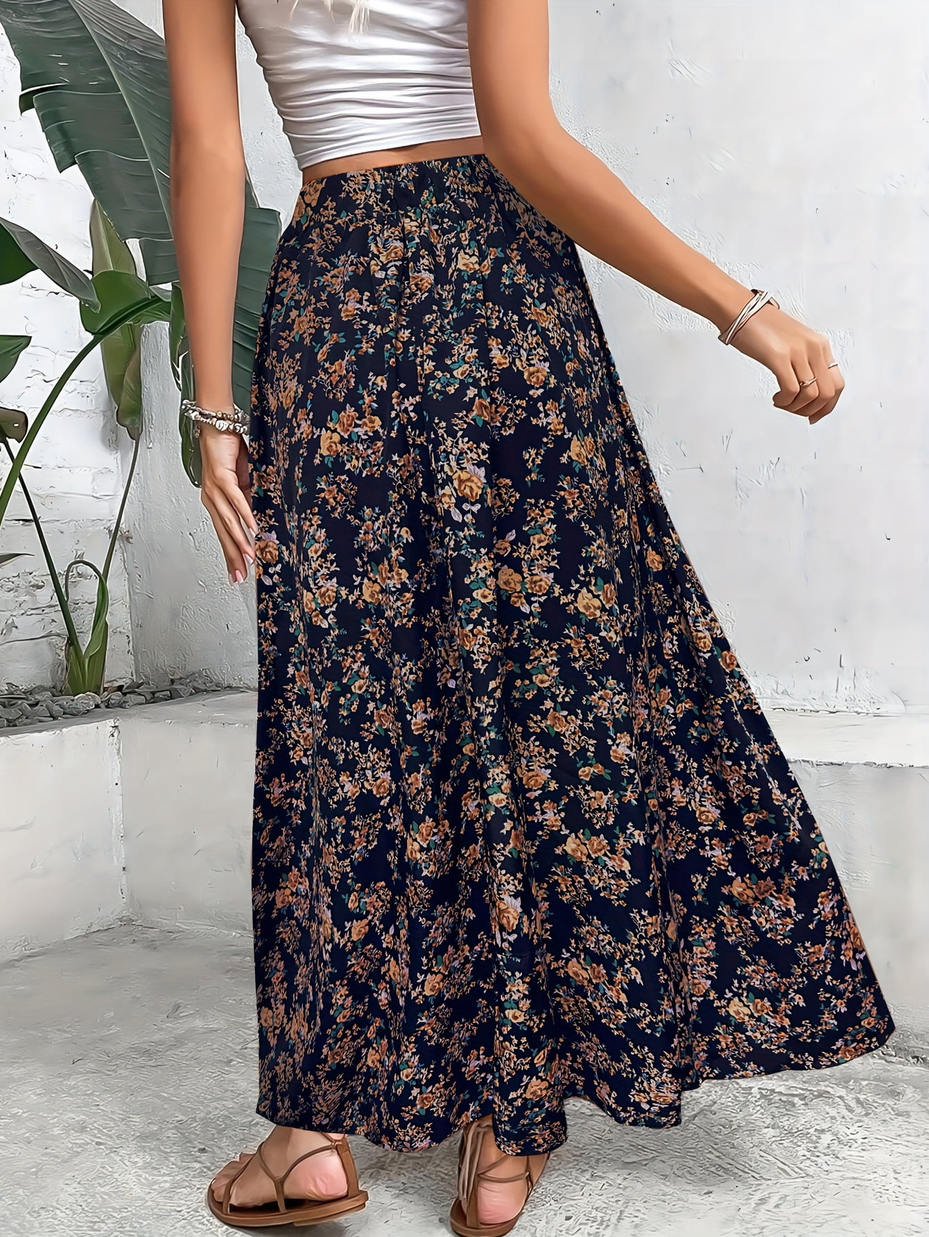 Floral Maxi Skirt Stretchy Floral Print Maxi Skirt Elegant