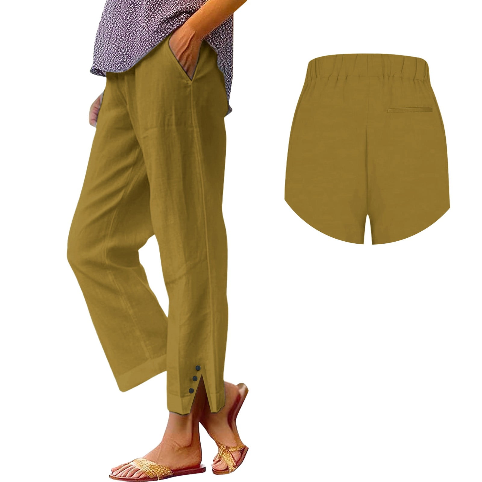 HSHMT Flowy Pants for Women Under $9 Casual Solid Straight Elastic Long
